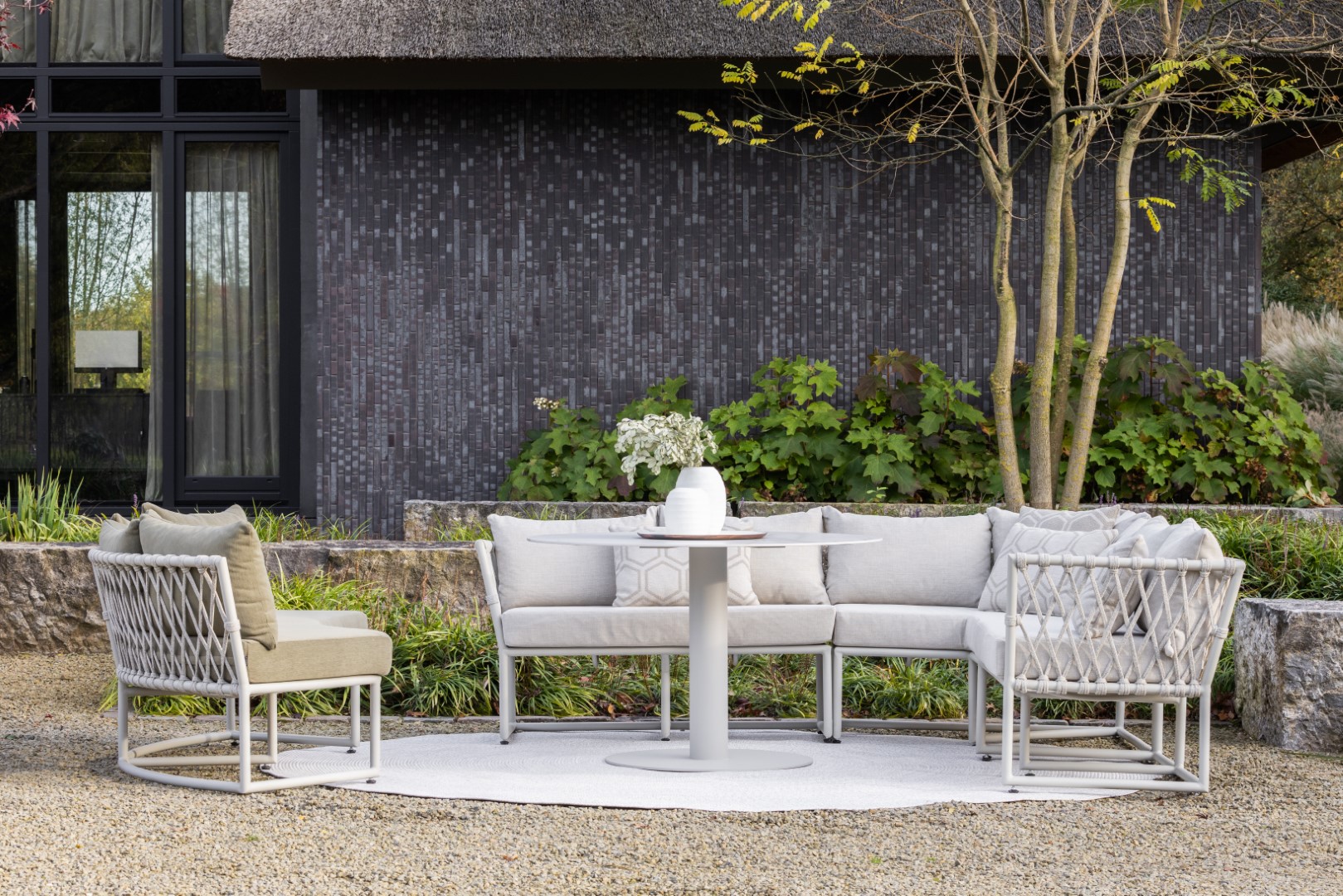 Vă prezentăm colecția cheie de bănci de luat masa în aer liber. Această colecție include cinci elemente versatile care pot fi aranjate pentru a se potrivi stilului și spațiului dumneavoastră. Puteți crea un aranjament de scaune în jumătate de cerc așezând două elemente rotunde de bancă unul lângă celălalt și completați-l cu o masă rotundă, cum ar fi Peniche, care este disponibilă în diferite dimensiuni, și câteva scaune de sufragerie libere.